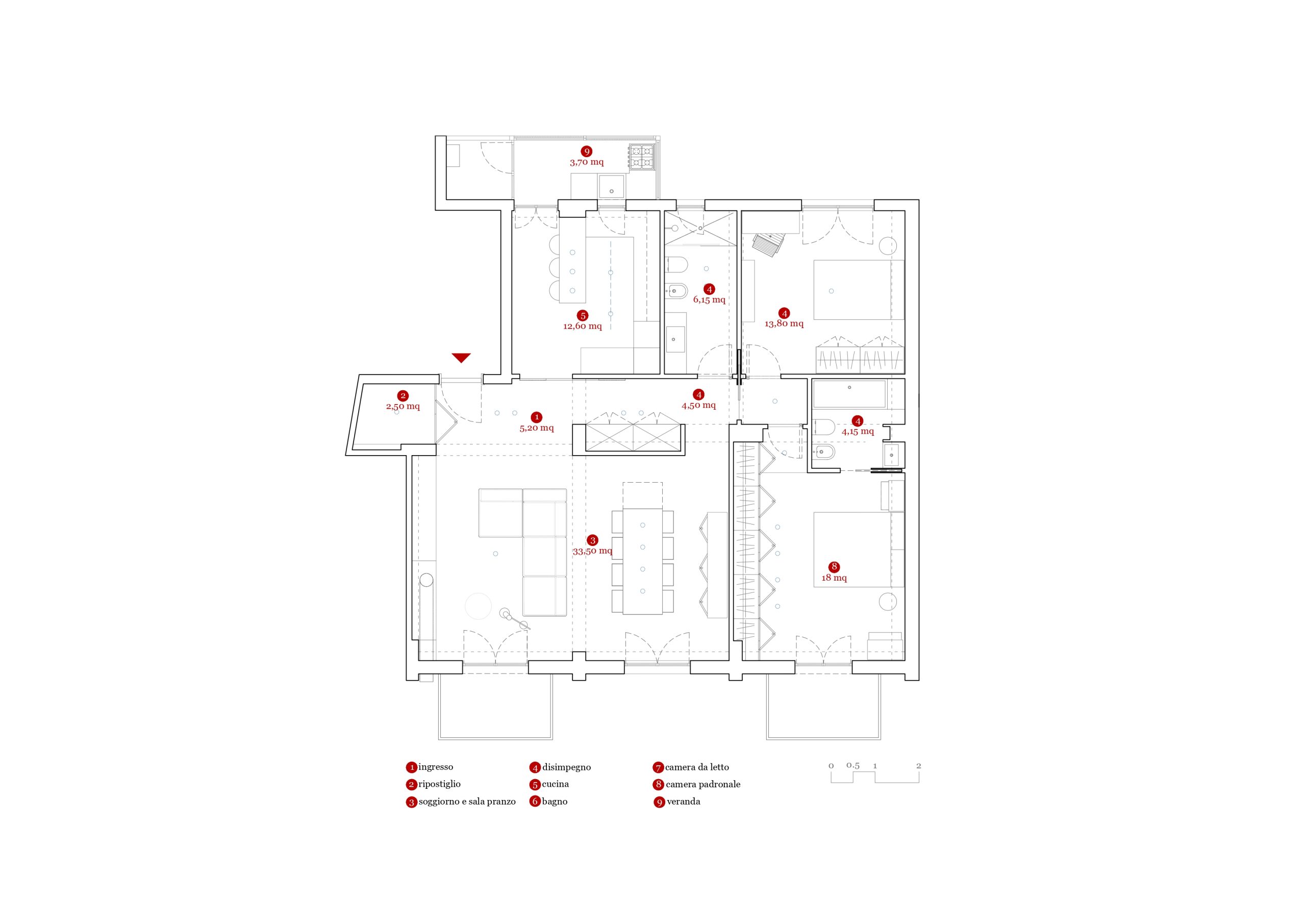 L’approccio architettonico rimane fedele alla semplicità e alla linearità, garantendo un ambiente armonioso e accogliente. La cucina, inserita con una penisola strategica, offre non solo funzionalità ma anche convivialità, con uno spazio snack ideale per le colazioni informali e i momenti di socializzazione.