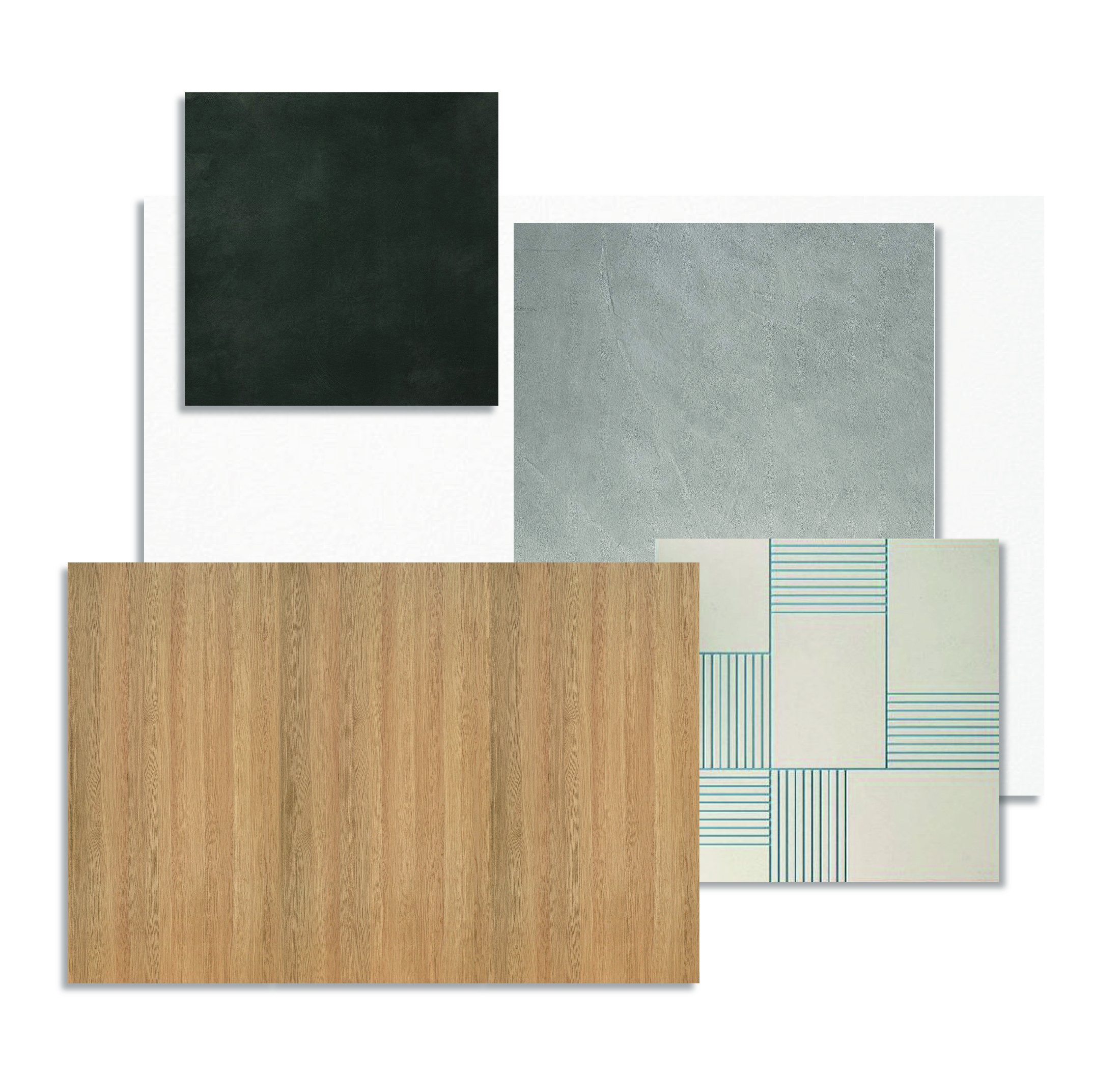 Nel bagno ritroviamo la resina a pavimento, il filo conduttore della progettazione dell’immobile. In quesot ambiente, spiccano particolarmente le ceramiche turchesi dal design contemporaneo: il lavabo contrasta il grande mobile sospeso a cassetti in legno di rovere, mentre i sanitari coordinati donano un tocco pop alla stanza. Il canonico bianco ottico a parete è qui sostituito da un meraviglioso manto di piastrelle in formato quadrato con motivo geometrico eterogeneo in grado di dinamicizzare la muratura e arricchire anche il box doccia con telaio minimale e miscelatore di design.